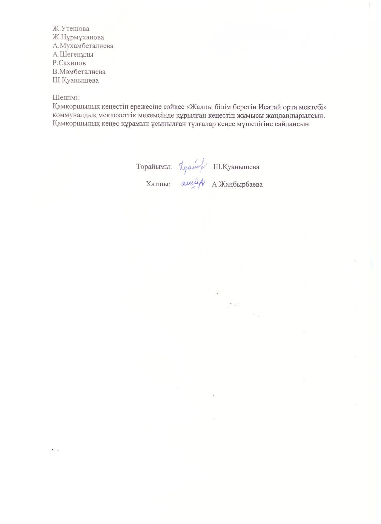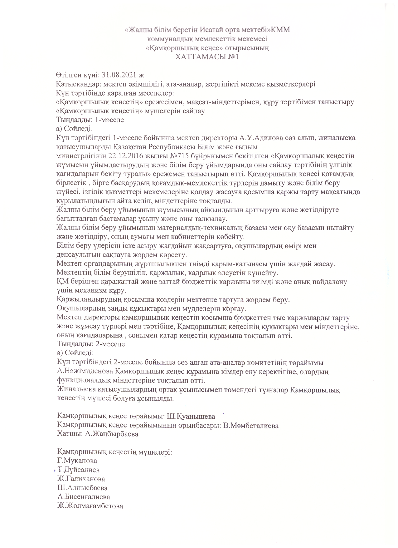 Қамқоршылық кеңес отырысының №1 хаттамасы