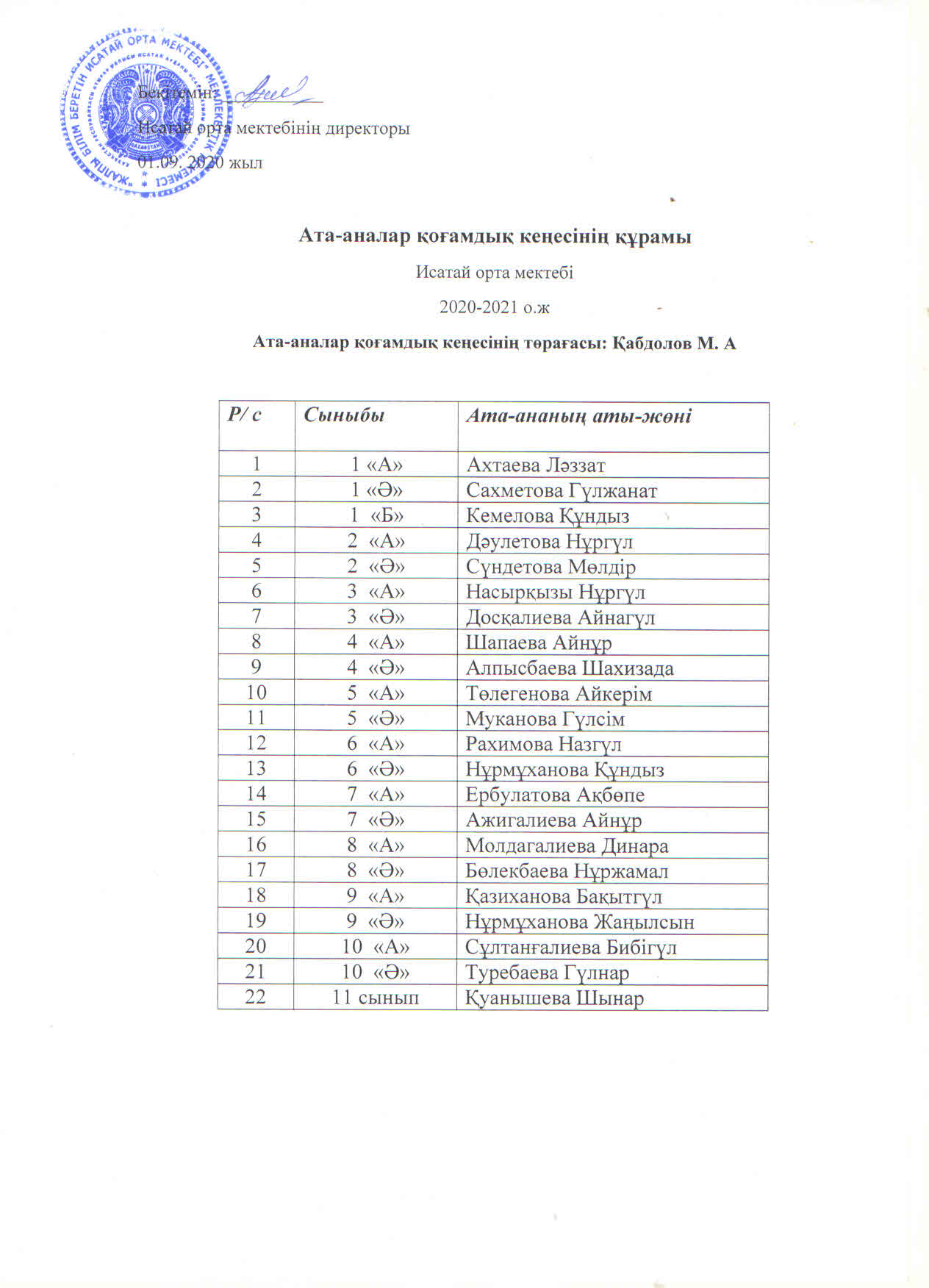 Ата - аналар қоғамдық кеңесінің құрамы